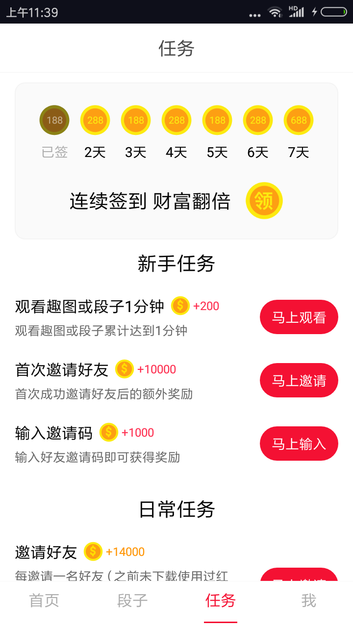 平台首页推荐大量热门段子和搞笑的短视频内容,滑动屏幕即可浏览精选图文搭配网友的神评论。参与方式直接明了,通过浏览视频或阅读段子达到一定时长即可累积金币,平台每天会推出不同类型的红包活动,如时段红包、每日签到与各类任务奖励,使得观看过程本身即能产生收益。累计到指定数量的金币可便捷提现至主流第三方支付渠道。邀请好友加入可获得丰厚奖励,进一步放大收益。其内容库庞大且每日更新,涵盖从经典老梗到时下流行的各种幽默题材,并通过个性化推荐系统,根据浏览行为智能推送感兴趣的内容,确保持续提供新鲜感。