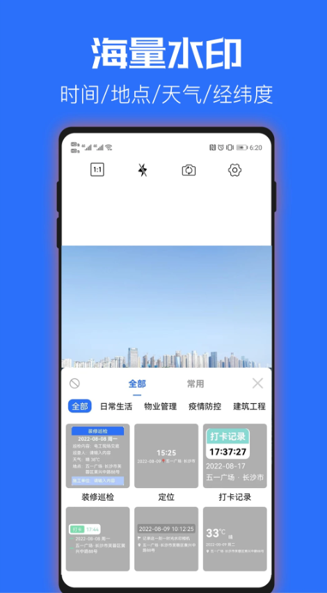 它提供了丰富多样的拍摄模式和功能。在拍摄模式上,有普通拍照、连拍、定时拍摄等,满足你不同场景下的拍摄需求。比如当你想要抓拍精彩瞬间时,连拍模式就非常实用;而和朋友一起拍照时,定时拍摄功能就能让你有足够时间摆好姿势。在水印方面,涵盖了日期、时间、地点、天气等基础信息水印,还有各种风格的艺术水印,像复古风、卡通风、文艺风等。你可以根据照片的主题和氛围选择合适的水印,让照片瞬间变得生动有趣。软件还支持对照片进行简单的编辑,如裁剪、调色、添加滤镜等,让你无需再借助其他软件就能打造出满意的照片效果。