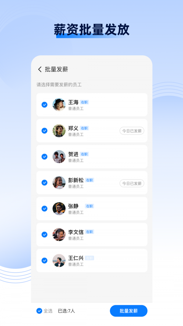 6.从零工经济到临时职位,再到传统行业内需要日结的岗位,发日薪软件都能提供强有力的支持,让薪酬支付更加及时、高效。