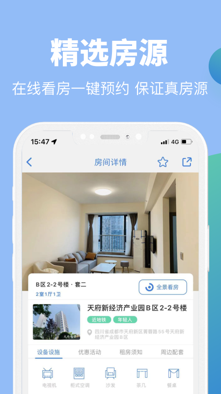 打开应用,你首先会被它清晰简洁的界面吸引。首页的地图找房功能能快速定位周边房源,点击即可查看带VR全景和视频展示的房屋细节,从户型、面积到家电配套一目了然。如果心动,直接线上预约看房,到店就有专业管家带你实地考察。签约环节更是省心——电子合同在线签署,租金支付支持多种渠道,动动手指就能搞定。入住后,报修、保洁、账单查询都能在在线管家板块一键提交,24小时客服随时响应。它还会推送丰富的社群活动,比如手工沙龙、运动派对,让你快速结识邻居。