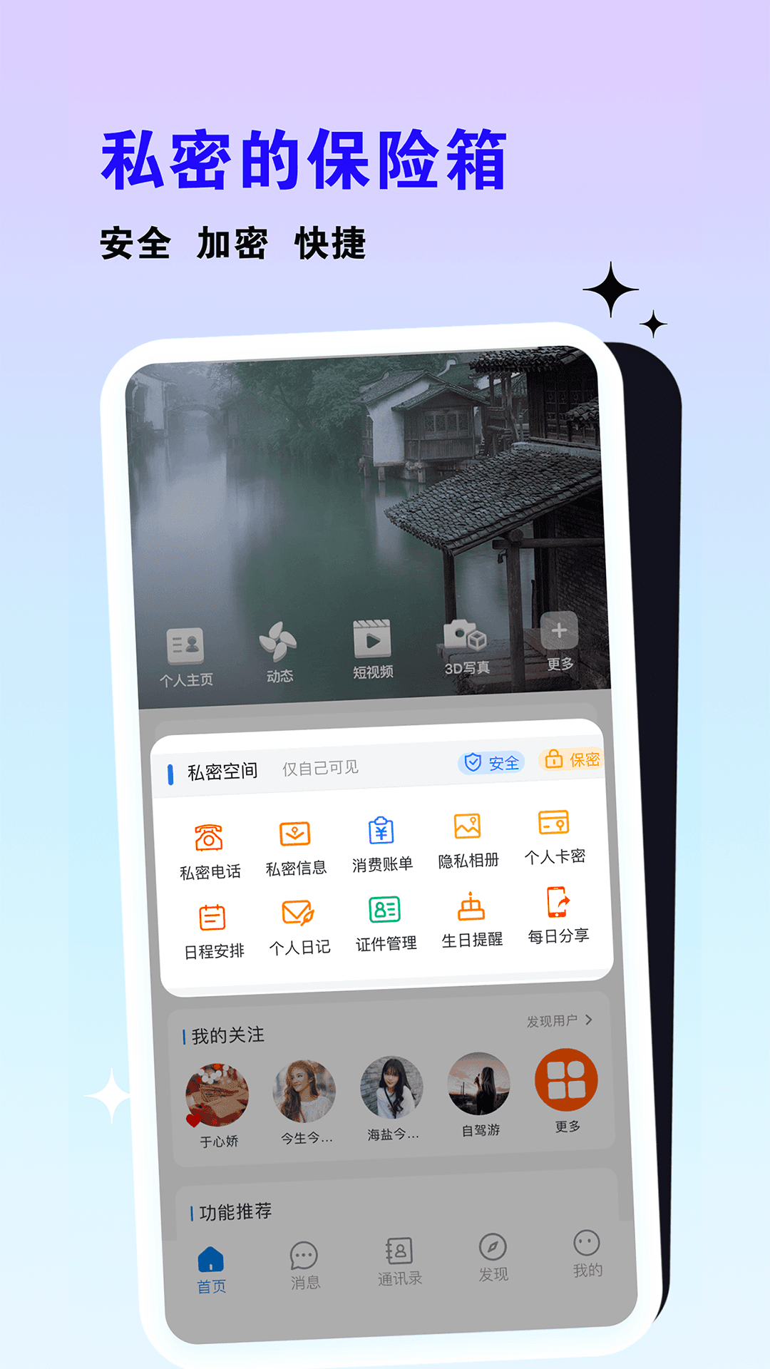 乙站的核心功能涵盖数据管理、社交互动和创作工具三大模块。在数据管理方面,它提供私密保险箱功能,采用高级加密技术保护用户信息,包括私密通话记录、消费账单、隐私相册、个人日记、证件管理及日程安排等,确保敏感内容不被泄露。社交模块允许用户关注其他用户,实时接收动态更新,并通过点赞、评论或聊天进行互动,支持多平台账号快速切换,实现资源共享。创作工具则包括拍摄记录、3D写真制作和文字文案编辑,用户可随时记录所闻所思,生成个性化内容并分享至社区。整体设计以用户为中心,兼顾安全性与便捷性,例如高清图片秒传功能简化了内容发布流程。
