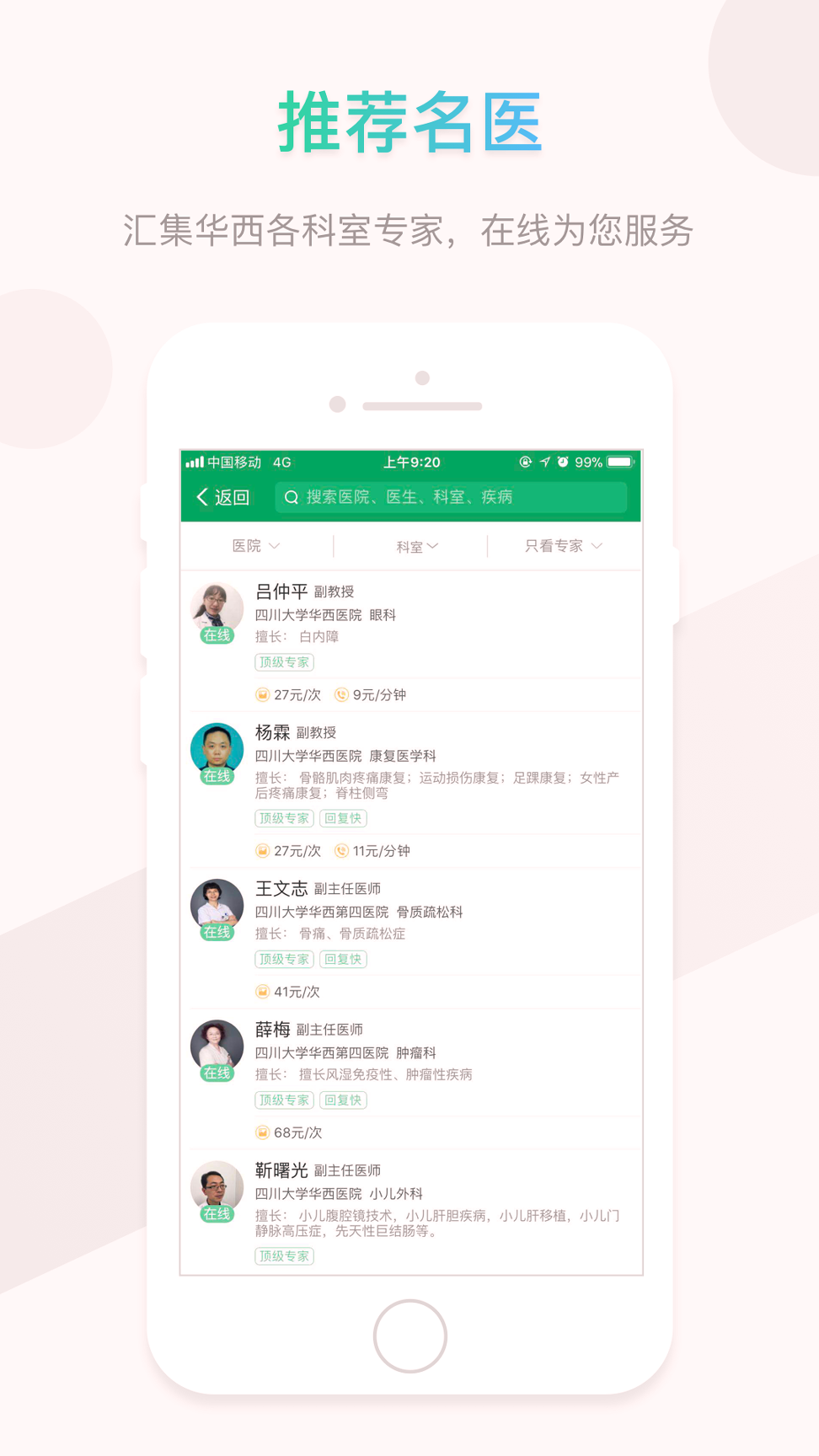 它的信息安全有保障。你的个人健康信息和隐私会得到严格的保护,不会泄露给任何第三方。它的服务质量高。平台上的医生都是经过严格筛选和认证的,有丰富的临床经验,能为你提供准确、专业的医疗服务。它的响应速度快。无论是挂号预约还是远程问诊,都能在短时间内得到处理,让你不用长时间等待。它的性价比高。相比去医院看病,使用软件进行远程问诊和在线购药能为你节省不少费用。