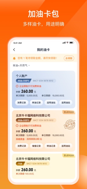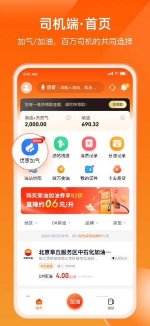 其智能推荐系统能够支持多加油站油价对比,为驾驶员筛选并推荐性价比最高的加油站点,直接帮助节省燃油成本。支付体验极其便捷,通过手机扫码或出示加油码就能完成线上支付,省去了携带现金或实体卡的麻烦。提供了透明高效的财务管理,所有加油明细、资金分配和消费记录都实时可查,让驾驶员对个人加油资金拥有全权的掌控感,免去了传统油卡可能遇到的圈存、锁卡、挂失等诸多烦恼。应用还贴心提供油耗分析与行车报告记录,帮助驾驶员优化驾驶习惯。