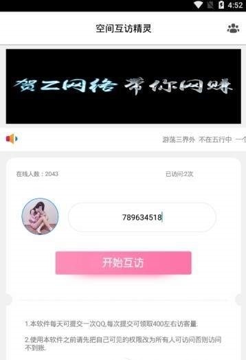 2.在数字化的时代,社交网络成为人们连接彼此、分享生活的重要平台。QQ空间作为国内广受欢迎的社交平台之一,拥有庞大的用户群体。而为了增强用户间的互动,提高自己QQ空间的访问量,QQ空间互访精灵应运而生,它是一款旨在帮助用户增加QQ空间访问量的智能软件APP。