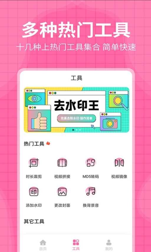 去水印王是一款集照片和视频去水印、视频剪辑、音效替换、封面定制等多项功能于一身的全能型视频编辑小助手,专为追求高效与创意的爱创作的你而设计。无论你是想在社交平台上分享自己的日常点滴,还是为自媒体或商业宣传准备素材,这款小工具都能轻松满足多样化的编辑需求。它就像一个贴心的创作伙伴,让去除水印、添加个人标识、剪辑视频片段、更换背景音乐等操作变得简单快捷,帮你把心中的创意轻松变成现实。