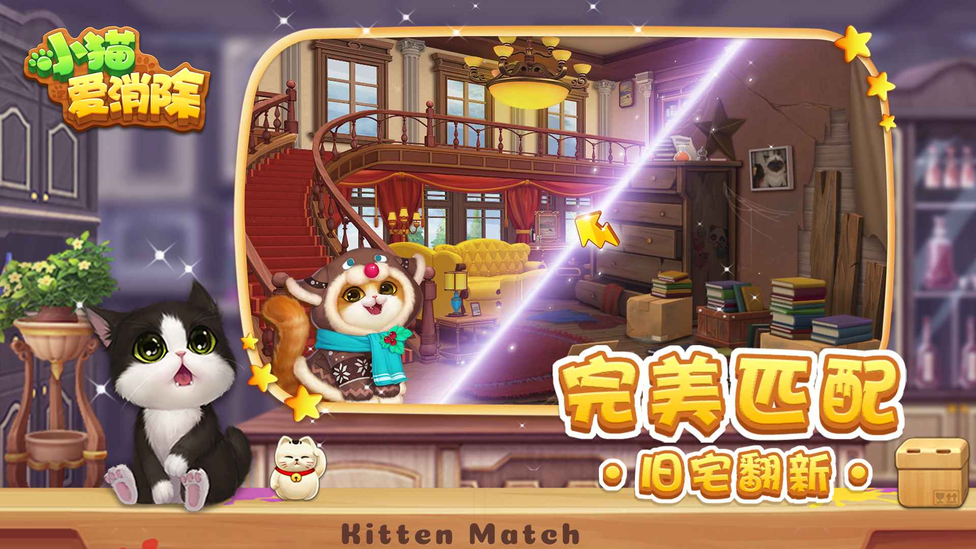 小猫爱消除是一款融合了趣味三消、云养猫和自由装修三大元素的治愈系休闲手游。您不仅能享受经典消除带来的解压乐趣,还能与一群活泼可爱的喵星人相伴,通过闯关收集资源,照顾它们的生活,并亲手设计和装饰一座老宅邸,开启一段温暖而甜蜜的冒险旅程。