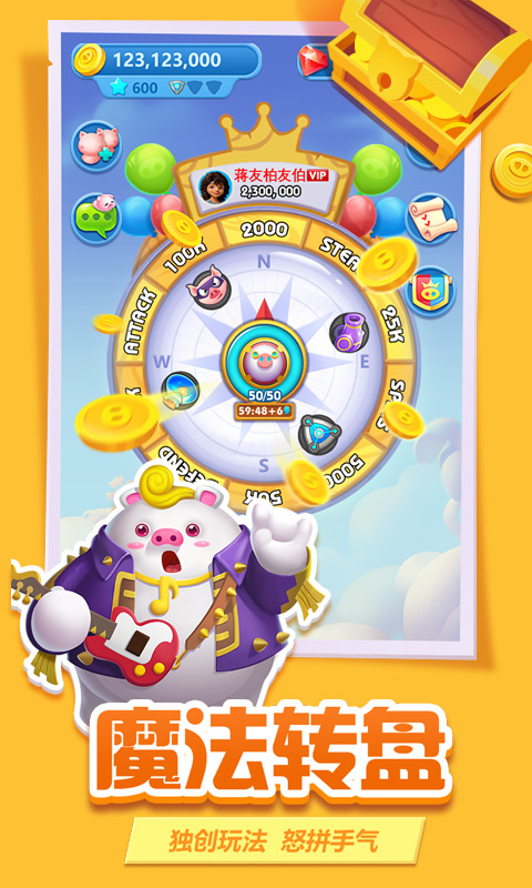 猪来了是一款风靡全球的休闲社交手游,凭借其独特的玩法和Q萌可爱的卡通画风,赢得了全球超过三亿朋友的喜爱。我们将扮演一只可爱的小猪,通过转动命运的转盘来赚取金币,发展建设属于自己的梦幻岛屿,并与好友展开一场场充满欢乐的互动与竞争。这片天地融合了冒险、养成、经营与社交等多种趣味元素,为我们打造了一个可以随时进入、轻松愉快的虚拟世界。无论是想独自悠闲建造,还是与伙伴们热热闹闹地一起玩耍,都能找到属于自己的快乐。
