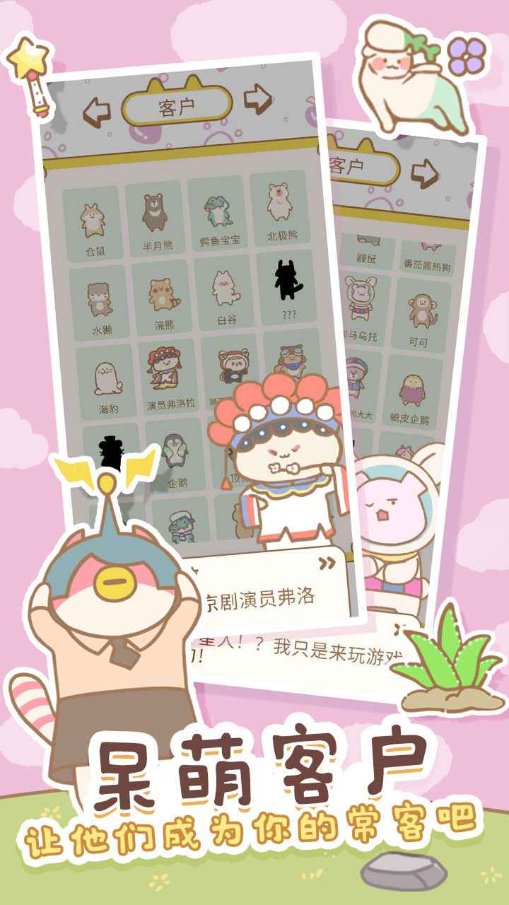 引入了满意度连锁口碑机制,提供优质服务不仅能获得即时回报,还能通过口碑传播吸引更多VIP客户,达成里程碑成就时可获得限定称号和特效装饰。具备深度社交系统,允许拜访好友的水疗馆并互相赠送特产礼物,在特殊剧情中还能参与如猫咪选美大赛这类活动,为员工搭配参赛造型,增添了趣味互动。物品系统极为庞大,拥有超过200种功能各异的道具,分为装饰、设备和消耗品三大类,部分稀有特效道具能触发特殊的互动动画,为店铺装潢与经营提供了极高的自由度。