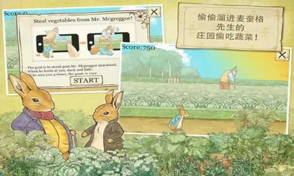 2.原声音乐:游戏中的背景音乐和角色配音都来源于原著故事,让玩家更加深入地感受彼得兔的魅力。